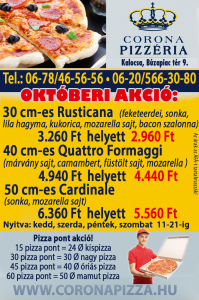 A valamikori Vadászkürt étterem helyén 2001- ben nyitottuk pizzériánkat. Kalocsán akkor nem létezett kimondottan kiszállításra specializálódott pizzéria. Az elsők mi lettünk.